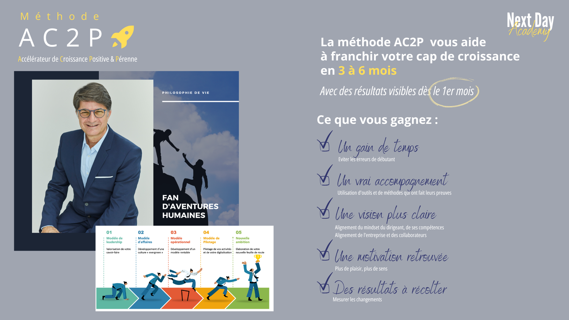 “Si comme moi, vous êtes devenu un dirigeant grâce à votre domaine d'expertise mais sans véritable bagage de chef d'entreprise, alors le programme d'Antoine Day est fait pour vous : Vous obtiendrez toutes les clés pour analyser, suivre et développer votre business !”